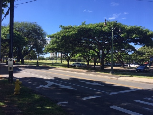 おしゃれなカフェなどが点在するモンサラット通りを抜け、カピオラニ公園に戻ってきます。