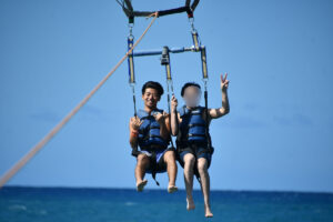 その後、沖へ5分ほど進んだらすぐにパラセイリングが始まりました。