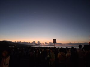 まず、ダイヤモンドヘッド州立自然記念公園に到着して入り口で見た、まだ日の出前の景色です。この日はたくさんの星を見ることが出来ました。ラッキーだと流れ星も見えるんです。